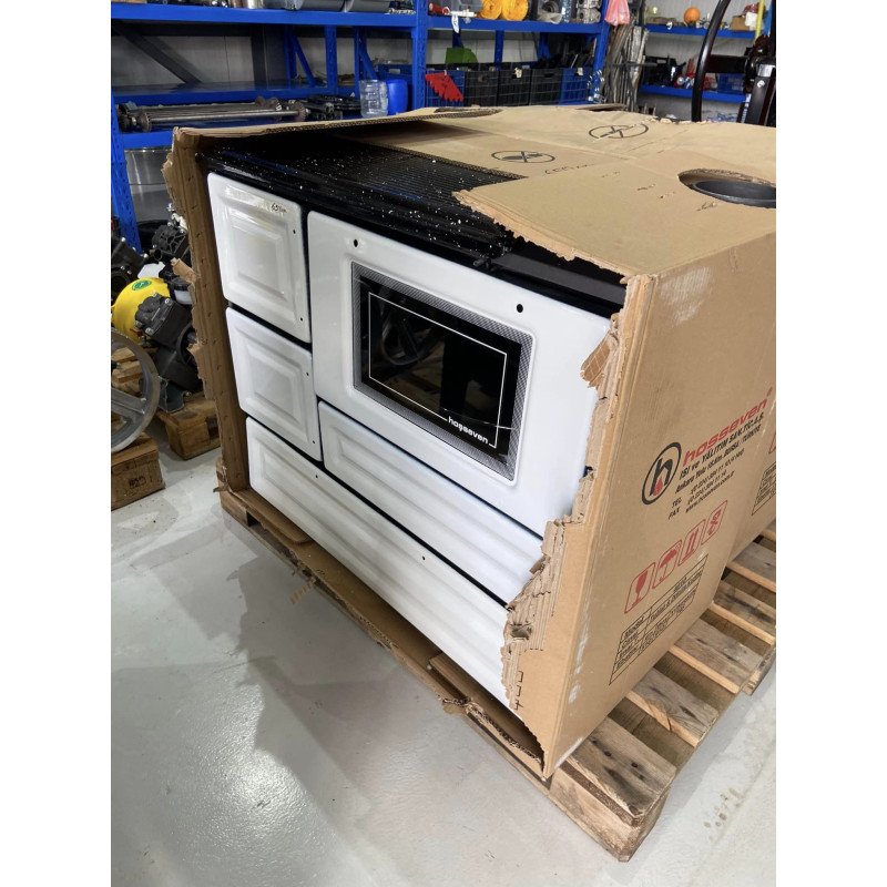 Готварската печка е израотена от ламарина,тухли и чугунена плоча. Ламарината е обработена и след това е емайлирана цялата от светло към тъмно кафяв емайл, който и усигурява по дълъг живот и благодарение на това печката е с по естетичен външен вид наподобяваща красив мебел. Чугунените тухли са най съвременната технология при изграждането на горивната камера на готварската печка за да може при изгаряне на дървата те да не повреждат ламарината а да насочват получената топлина към фурната а пък отдолу има скара върху която се поставят дървата. Животът на чугуна като материал е много по дълъг и това прави модела доста предпочитан. Този модел печка е с чугунен плот изработен от едро-зърнест материал, разположен на цялата горна част а именно точно там където основно е най голямата температура и отлично поема и издържа на високите температури създали се от процеса на горене. В долната част на печката има една вратичка, която закрива нишата за дървата. Вратичката на фурната е направена от термоустойчиво стъкло издържащо на 300 градуса и това не допуска проблеми при използването й. Пепелника под горивната камера е доста дълбок и е изработен от ламарина като допълнителният преден капак предпазва от падане на въглени и от евентуален пожар. Регулиращата клапа посредством лостче от пред, спомага за задържане на топлината за да се позволи ястията да бъдат хубаво изпечени от всички страни. Моделът на печката има предпазен капак който се слага когато не се ползва за запазване от замърсяване.Това е един от най харесваните и предпочитани модели. От нашият опит в продажбите при този модел сме установили положителните качества основно като отлична работа на фурната за изпичането на различни печива. Освен за готвене тя доста добре отоплява помещението, не само в което е но и съседни такива. Извода на кюнеца се намира в дясно над фурната и е излят с чугунената основа, размерът е стандартен за България ф130мм.